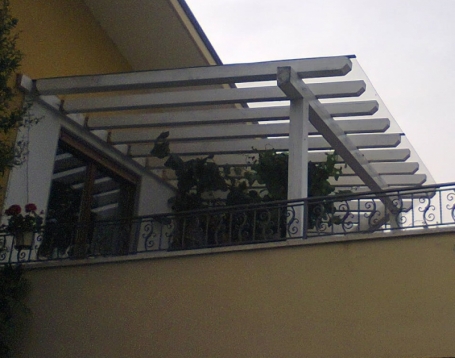Pompeiana in legno massello verniciato colore bianco con copertura in policarbonato compatto trasparente.