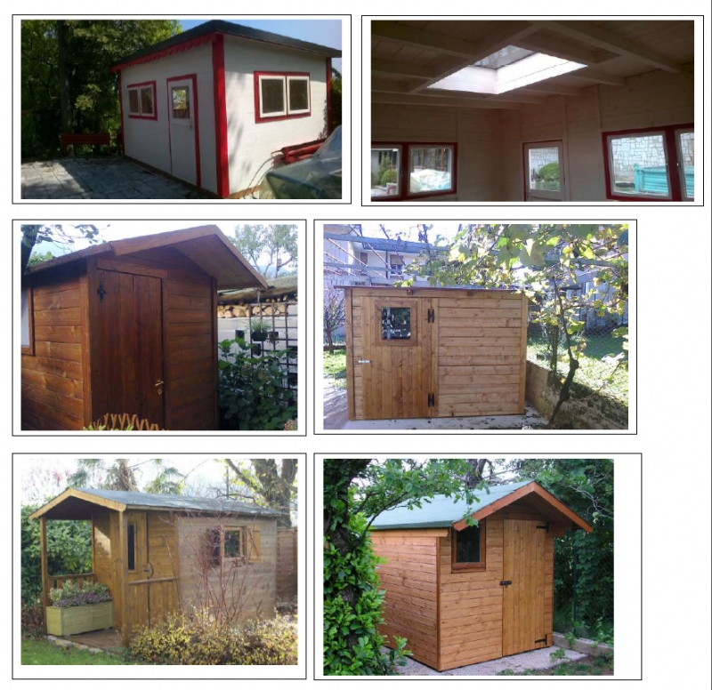 Casette per giardino su misura, in perlinato sp. 20 mm, travetti interni di struttura 30x50 mm, pedana a terra, copertura impermeabile, trattate per esterno.